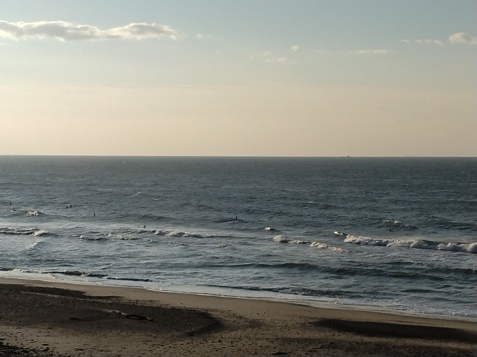 7時半のロングビーチは、風西8mで、波は腰~腹くらいです。今はインサイド風抜けていて、面も悪くなく、サーフィンできてます。坂下P周辺にサーファー20人位入ってます。アウトはすでに白波が飛んでるので、すぐに風入ってくるでしょう。今日も西風予報でウィンドは楽しめそうです。