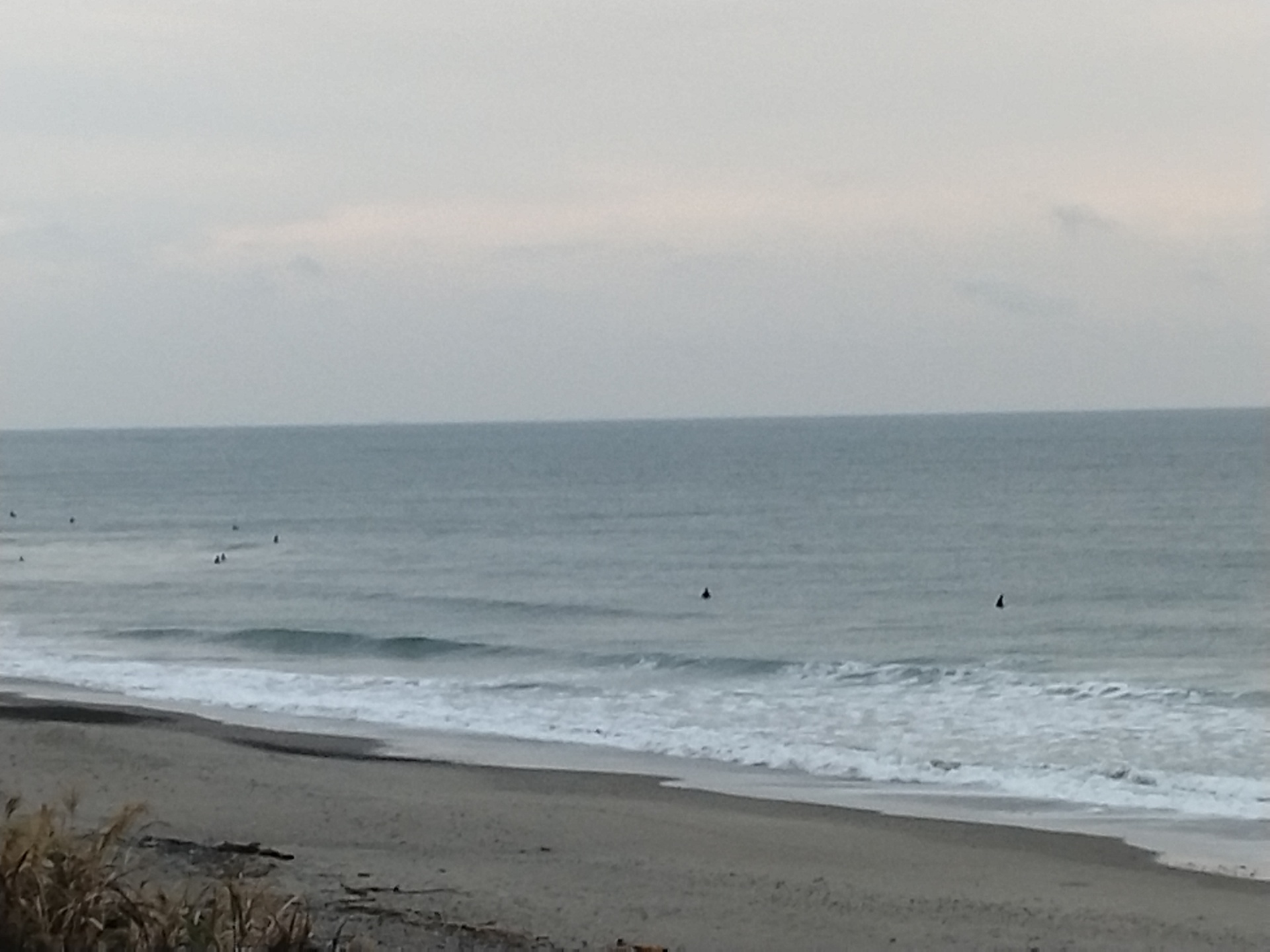 6時半のロングビーチは、風北北東7mで、波は小さいうねりはあり、腰くらいが正面Pでブレイクしてますが、坂下はなかなかブレイクしません。正面に20人以上サーファー入ってます。面は良い感じです。これから雨予報で、明日はガッチリ西風予報になってます。