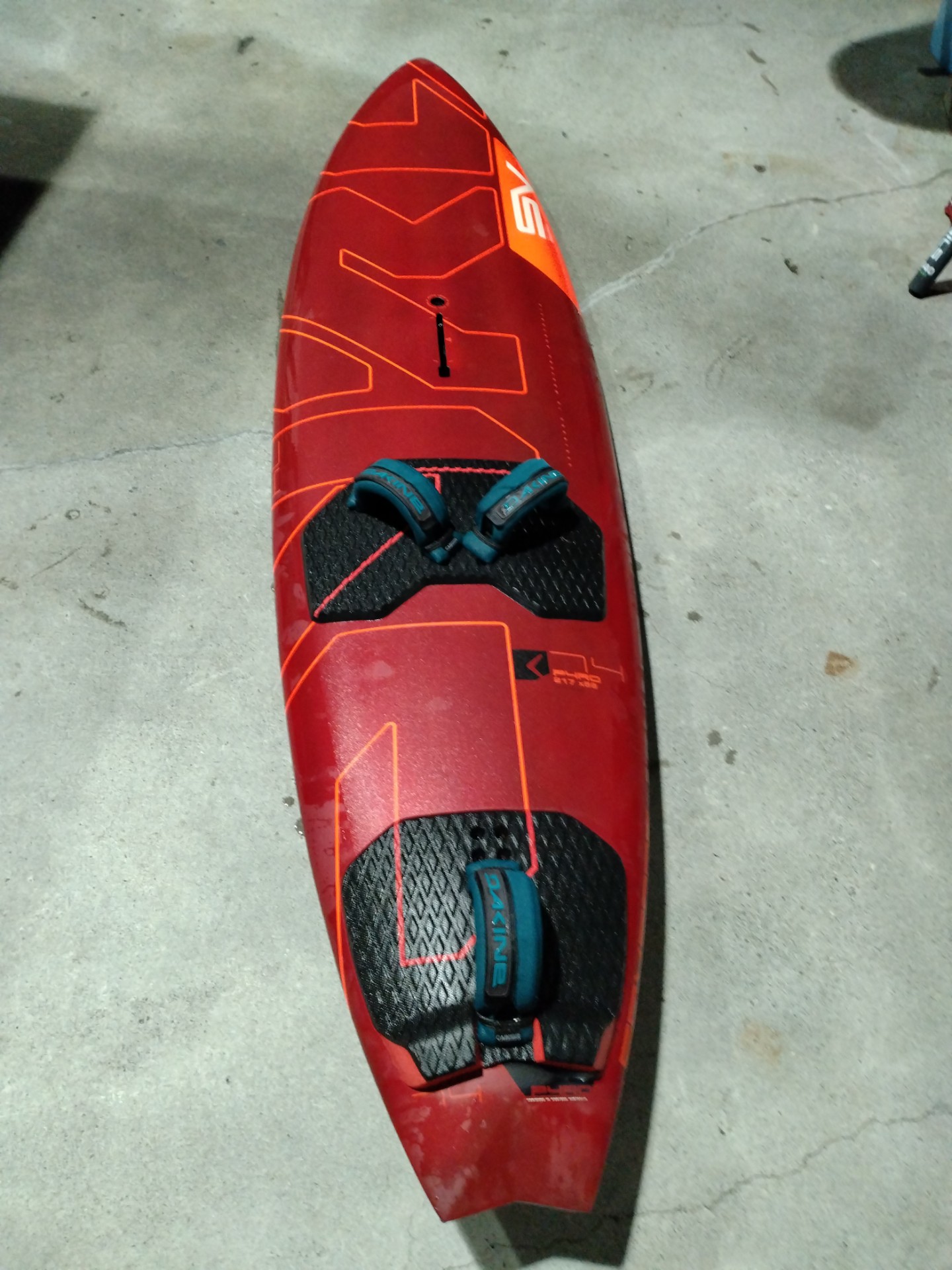 SEVERNEボードPYRO74Lを借りて、今日は乗りました。セイルはSEVERNE S-1の3.6㎡で、波は腹前後。とにかく、メチャ走り出しが良く安定しているので、風上への登りも良いです。スピードがありるのでジャンプもねらいやすいし、波乗りだと今日の腹くらい~頭くらいの御前崎のようなコンディションには調子良いボードのような気がします。GOYAのクアッドより、テイルよりでターンしやすいので、少しタイトにターンできるような気がしました。フィンは、クアッドのセットでサイドは純正、センターの2枚はBLACK PROJECTの14.5のセットです。そしてPYROは、税込でも定価387,200円とコストパフォーマンスも抜群です。おすすめボードの1つです。