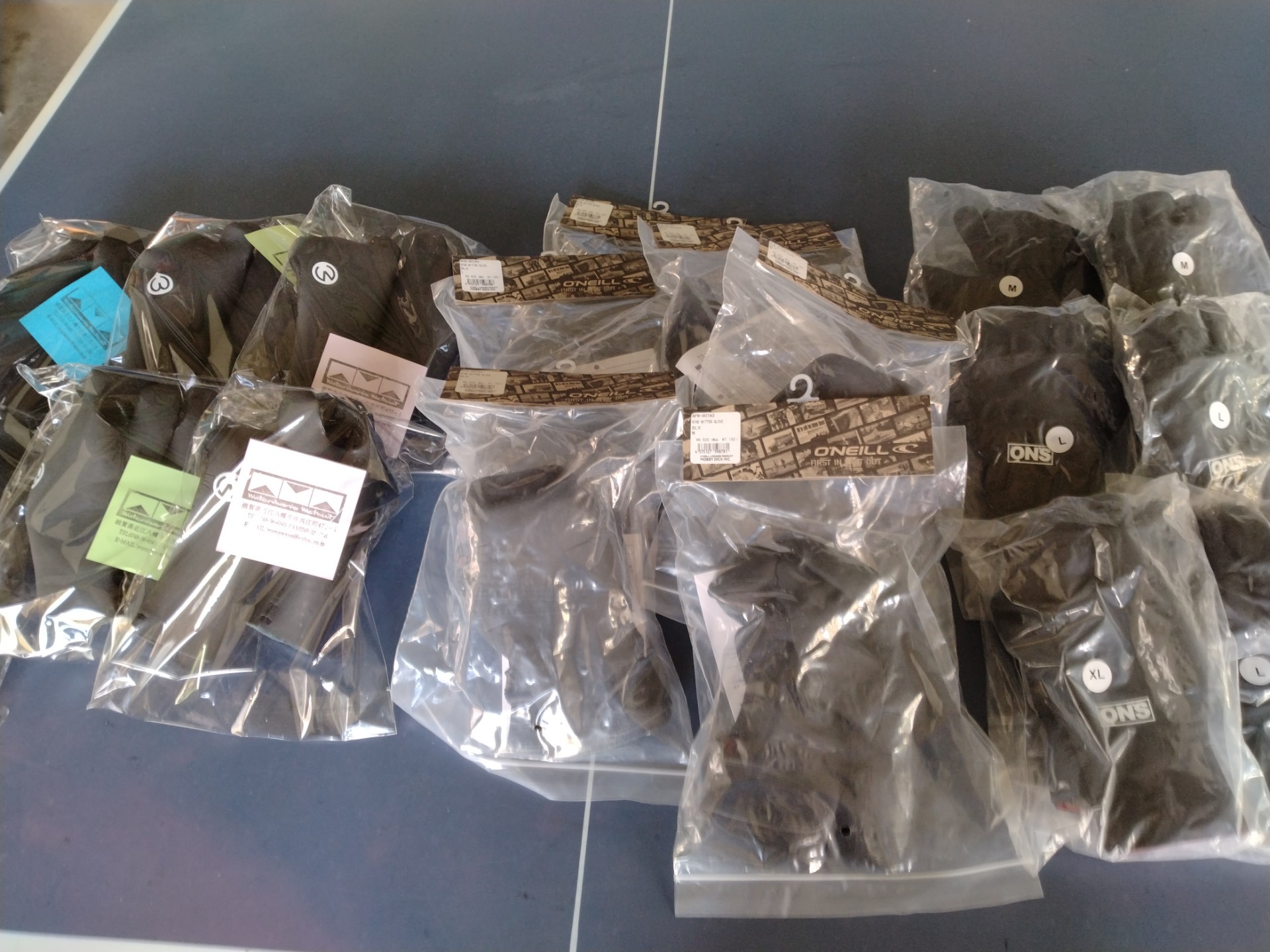 まだ必要ないですが、冬用のグローブ、ブーツ、ヘッドキャップの準備ができました。人気のO’NEILLのミトングローブに、ON’Sの5本指グローブ、真冬用で最も暖かいWMWのロブスターグローブの各サイズが今は在庫してます。在庫ある早目のゲットをお勧めします。