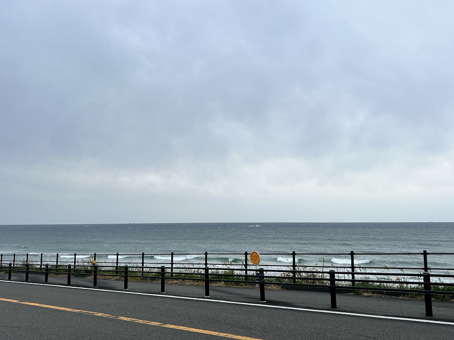 西風8m、曇り時々小雨、波は小さくセットで膝腿サイズ。正面にサーファー3人入ってます。今日はこれから、西風が上がってくる予報。北よりの風ですが、かなり強風予報となっていますので、急激なコンデションの変化には十分注意して楽しみましょう。今晩から冬本番の寒さとなりそうですね。
