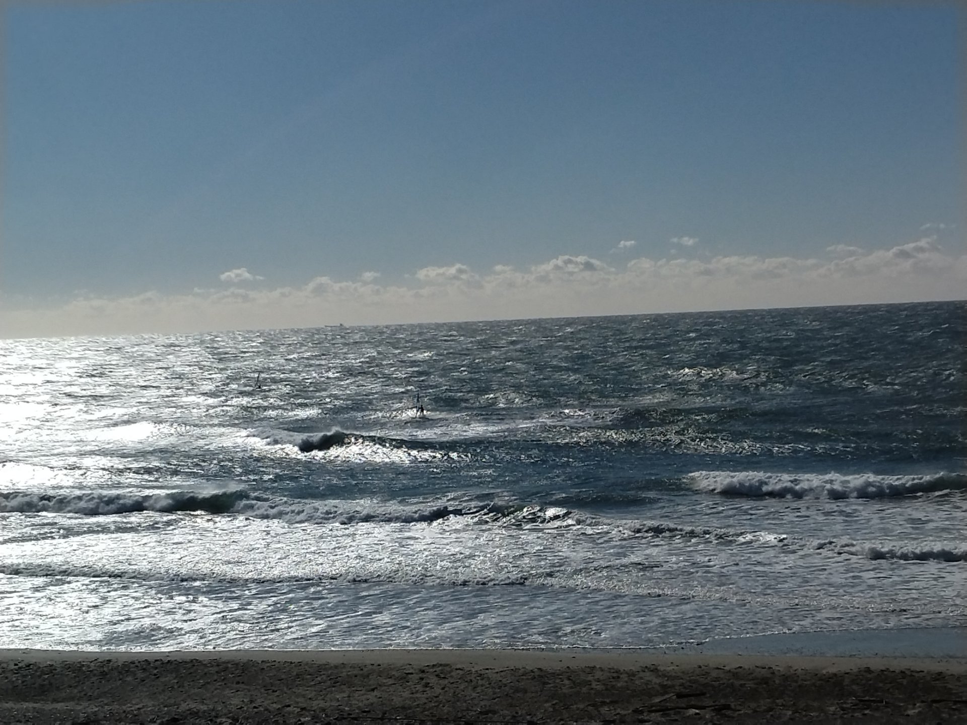 10時のロングビーチは、風西11mで、波は胸~肩くらいです。今はかなりオフっぽくインサイドは風抜け気味、アウトのみ走ってます。ウィンドサーファー6人出廷してます。今日はガッチリ西風コンディションですね。寒さもそれほど厳しくないです。