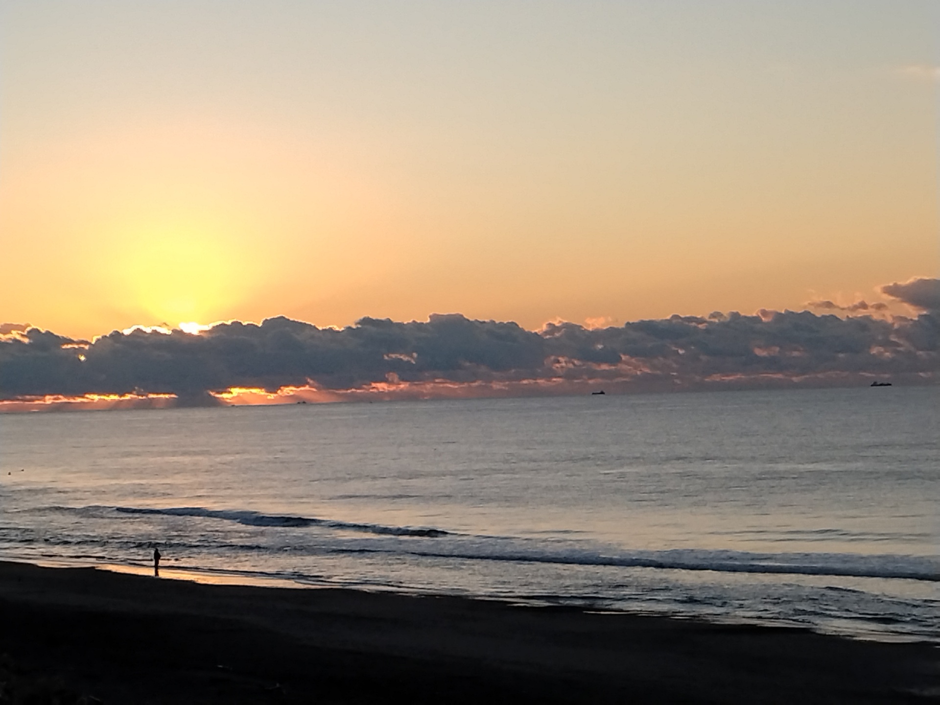 7時のロングビーチは、風北北西3mで、波はフラット~腿くらいです。小さいうねりはありますが、正面Pでたまに割れる感じです。正面Pに5人サーファー入ってます。明日から西風ウィークですね。年末、年始楽しめそうです。明日はロングビーチ(坂下)で、ジュニアユースのウェイブ大会が開催されます。一般の方は大会エリア外で、ウィンドになります。