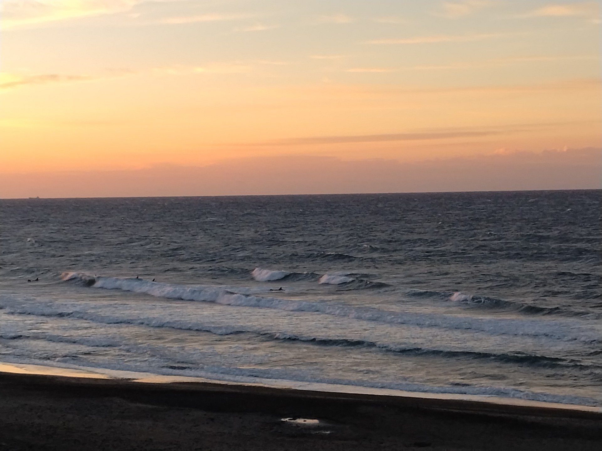 7時のロングビーチは、風西14mで、波は腹くらいです。インサイドは風少しまだ弱そうですが、アウトはビュンビュンですので、もう風入ってくるでしょう。坂下に10人サーファー入ってます。今朝は寒くなってますので、防寒対策して楽しみましょう。
