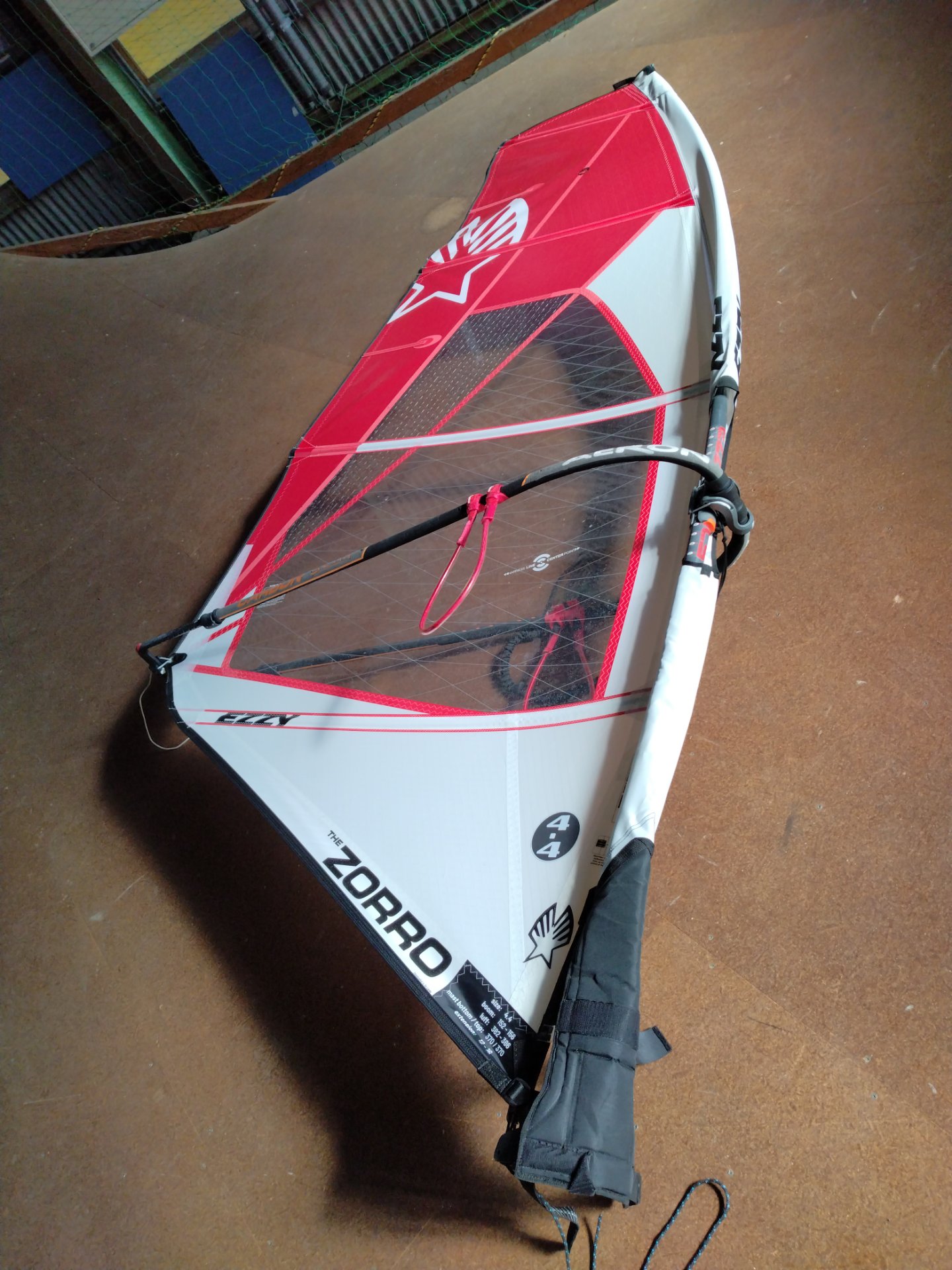 EZZYセイルからでた、全く新しいモデルのZORROです。今までのEZZYセイルとは違うデザインですね。セッティングしてみた感じでは軽い印象で良さそうです。お店に4.4㎡がありますので、風が弱い時は試乗可能ですので、是非トライしてみてください。