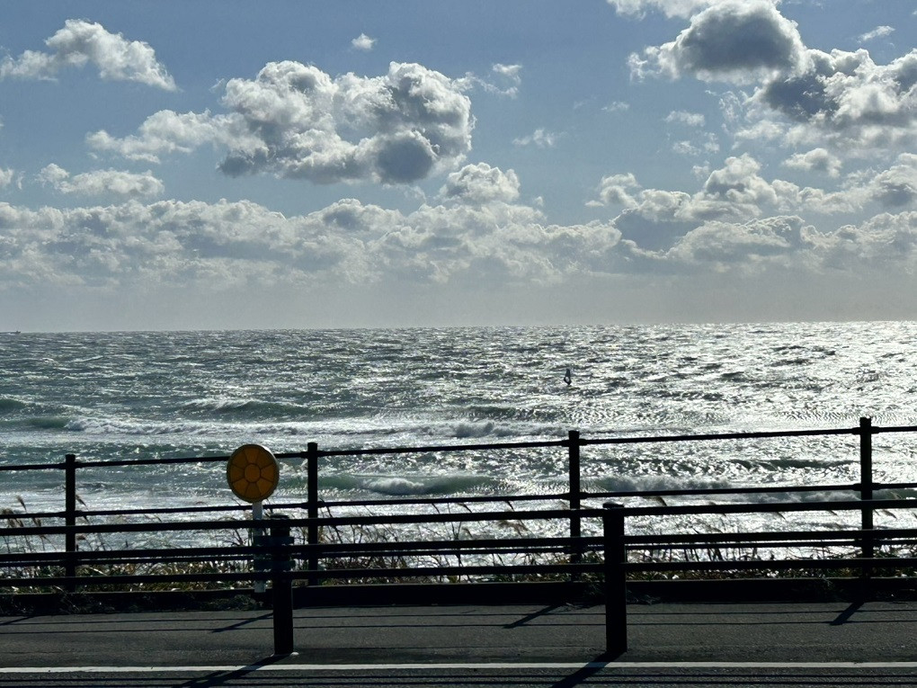 西風20m、晴れ、波はセットで胸~サイズ、ブローは強烈そうで、波も風で押しつぶされてる感じです。ウインド1人出ていますが風が手ごわそう。西方面に移動してる人も多いののかな?しばらく西風続きそうですね!