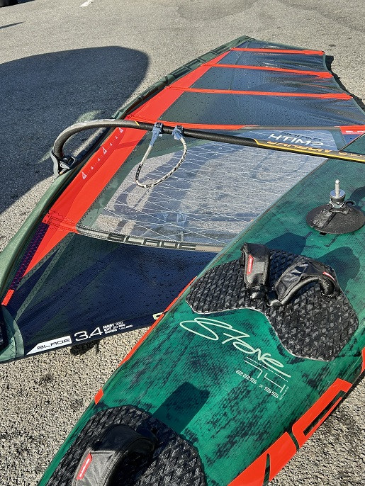3.4㎡ Blade 74L Stoneで昼過ぎから乗りました。ガスティーながらもブローはジャスト、波も腰腹サイズのセットでジャンプ波乗り楽しめましたが、すぐに風が落ちしばらく粘りましたが上がらずでした。Stone、レール入れやすく抜けにくく、ボトムからトップへのスムーズなレールワークが気に入りました!今日は春の陽気で楽しめました。
