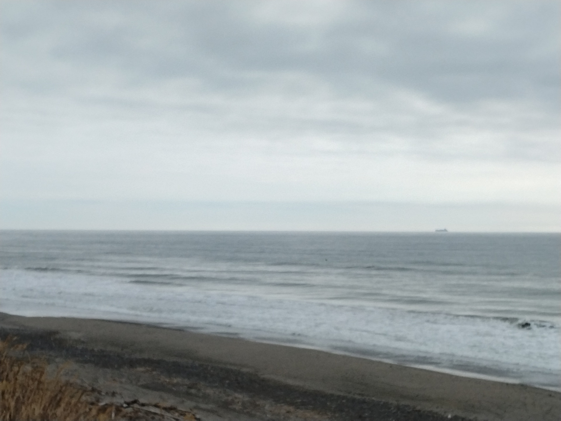 10時半のロングビーチは、風北北東2mで、波は胸~肩くらいです。正面Pで15人位、その西側に2人サーファー入ってます。坂下は割れづらく、誰もいません。面は良さそうです。曇り空で肌寒いですね。