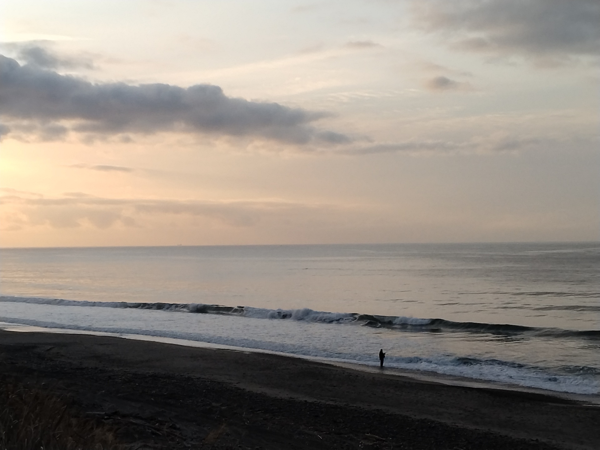 7時のロングビーチは、風はほぼ無風で、波は面ツルの腰くらいが正面で割れてます。坂下はインサイドよりのブレイクです。正面Pに5人サーファー入ってます。今日の後半から明日にかけ雨が降り、その後明後日吹きそうですね。寒さが戻りそうですが。