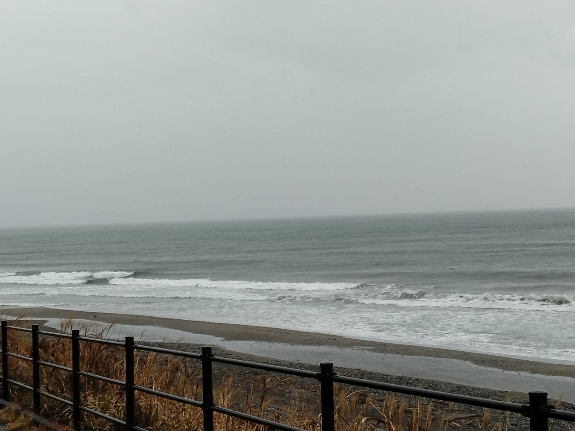 7時のロングビーチは、風北北東15mで、波は少しうねりはありますが、正面で腰~腹くらいのブレイクです。坂下はインサイドよりのブレイクです。正面Pに5人サーファー入ってます。今日は 北東の風が強い予報になってるので、内海ウィンドできそうです。雨で肌寒い朝です。