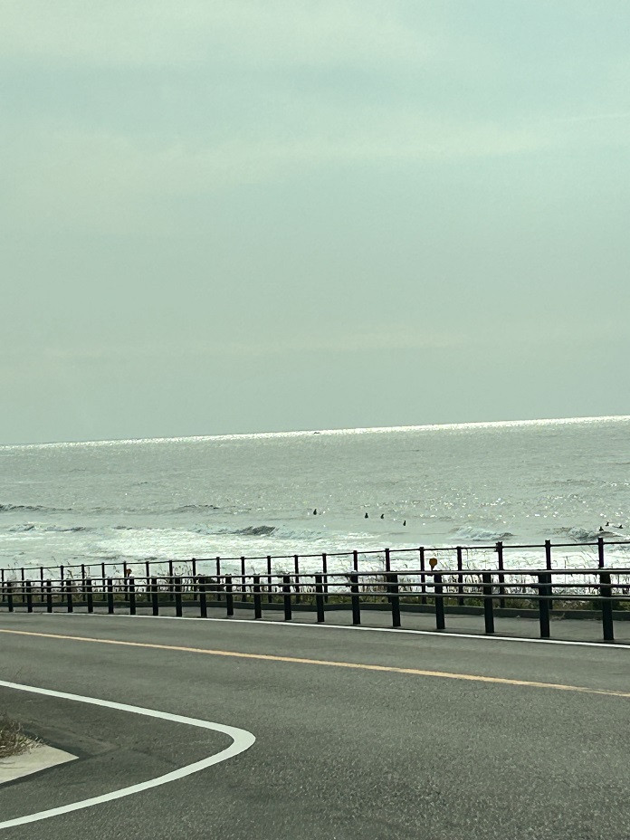 南西2m、晴れ、波はセットで腰~サイズ、朝方まで吹いていた西風の影響で、まとまりのない感じです。週末で坂下~メロン下までサーファーばらけて入ってます。気持ちいい朝です。