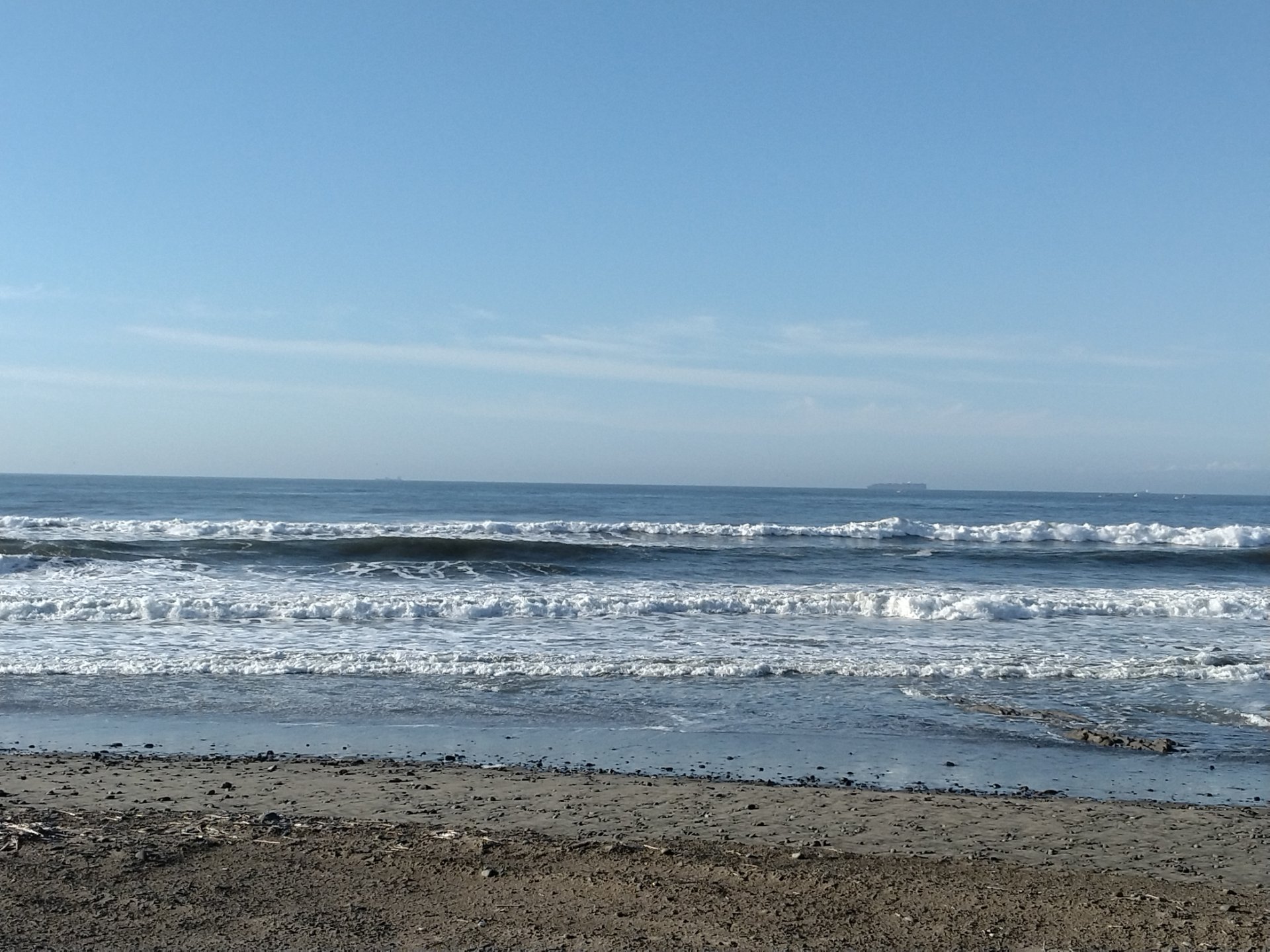 7時半のロングビーチは、風北北東2mで、波は胸~肩くらいです。タルメの波で、正面Pに数人サーファーはいってますが、坂下は厳しそうです。内海もうねり残ってて、腹~胸くらいあります。風は少し冷ためですが、気持ち良い朝です。